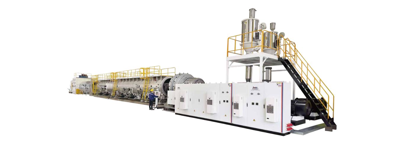 - Designed for large-diameter pipe extrusion, the spiral distribution structure mold is equipped with an in-mold suction pipe internal cooling system. Combined with a special low-sag material, it can produce ultra-thick-walled, large-diameter pipes.